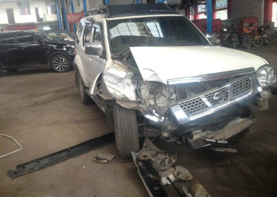从图中可以明显看到,锐腾虽然伤的不轻,但是车身结构基本保持了原貌,而帕拉丁就有点惨不忍睹了,整个车头已经严重变形。