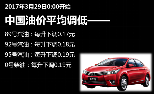 美国能源信息局近期发布数据显示,美国商业原油库存达到5.282亿桶。美国原油库存居高不下,引发投资者对原油市场供过于求的担忧,令油价承压。国际油价市场的波动也影响了中国,就在今天,国家发改委和改革委宣布从3月29日0时,成品油价格再次下调,此次油价调整具体为汽油每吨均下调230元,柴油每吨下调220元,创下年内最大降幅,同时也是2017年国内油价的“二连跌”,今起,加一箱油车主将可以省下9元。