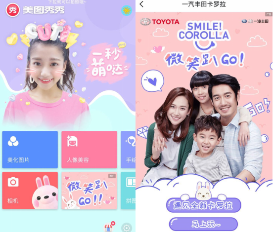 全新卡罗拉与美图秀秀联袂打造以“微笑趴 GO!”为主题的大头贴。边框以“SMILE”等正能量元素鼓励人们记录下自己生活中的美好瞬间。一汽丰田CEO、行业主编更是倾情出镜助力,同样为此次别具一格的上市发布会锦上添花。