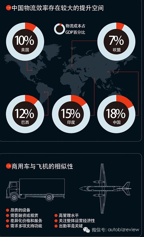 卡车也好,飞机也好,是复杂供应链的主要环节。现在有越来越多的中国企业开始融入整体供应链,不仅仅甘于作为生产者,他们更想做创造者。因此,物流的效率问题也就愈来愈重要。