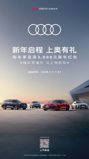 2026 年 1 月 6 日,上海 全新上汽奥迪A5L Sportback旗舰车型(200kW)已全面开启交付。值此新年到来之际,上汽集团正式启动懂车更懂你,马上焕新驾2026上汽新春欢乐购。上汽奥迪同步推出新年购车礼遇:即日起至1月31日,购买全新上汽奥迪A5L Sportback、上汽奥迪A7L、...