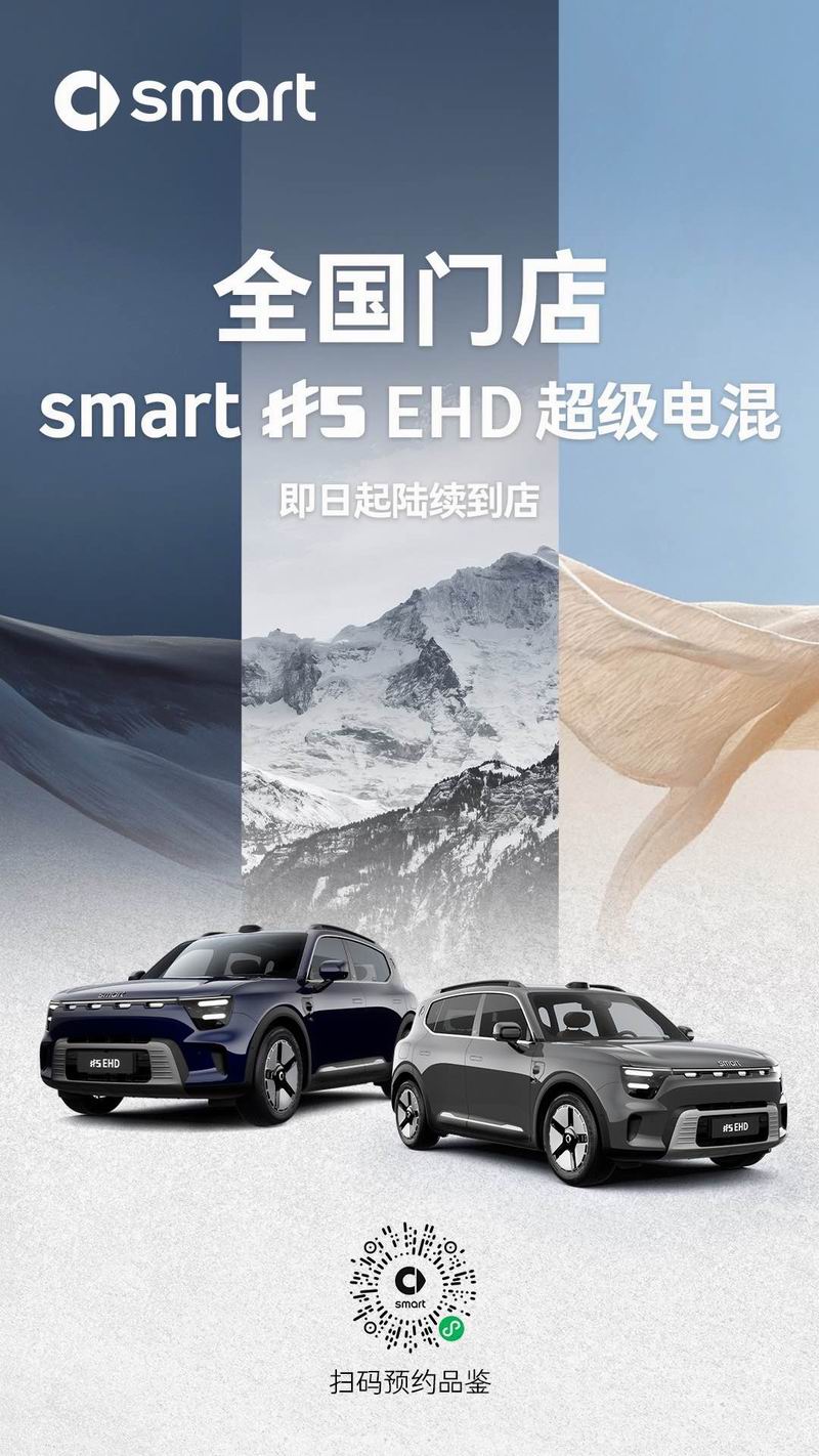 凭借超省、超顺、超猛、超静等硬核实力,smart #5 EHD超级电混让每一程比增程更成,为用户带来电车般的丝滑与节能,油车般的远行与无忧体验。目前,#5 EHD超级电混展车已陆续到店,想提前感受豪华电混的独特魅力?即刻前往全国各大smart展厅,或致电smart官方服务热线400-066-0077,先睹为快!