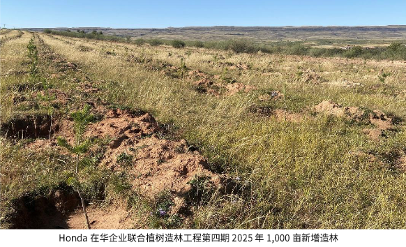 作为自2008年起由 Honda联合在华企业共同发起的植树造林工程,旨在通过植树造林遏制土地荒漠化,为改善当地生态环境做出贡献。截至2025年,该工程已累计投入资金6,500万元,先后在内蒙古自治区乌兰察布市的兴和县和察哈尔右翼前旗共计栽植苗木约213万株,绿化面积超2.4万亩。