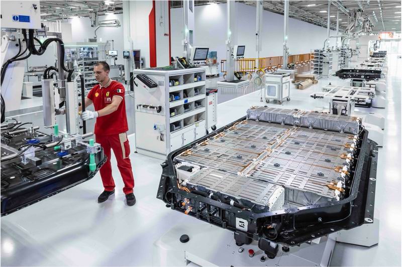 新车的电池完全由法拉利自主研发和组装,并巧妙地整合于车身底板。这种电池布局方式使整车重心相比同等内燃机车型降低了80毫米。