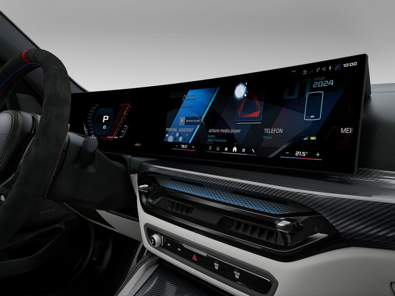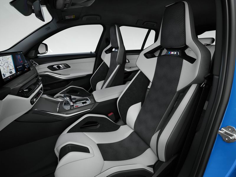 碳纤维组件,包括:多边形进气口、后视镜罩、尾部扩散器,以及车顶扰流板,在强化运动姿态的同时,也让空气流动更高效—轻量化与美感在此达成平衡。座舱内,M碳纤维座椅让轻量和舒适兼得,为长途驾驶保留惬意体验。