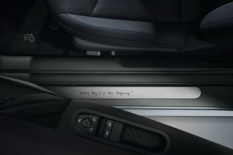 解锁车辆时,设计师手写体的“Hello”灯光投影映在地面,迎宾踏板上印有Paul Smith的座右铭“Every day is a new beginning”,用每日“刷新”的仪式感,传递品牌乐观哲思。Paul Smith还将他的“幸运符”手绘兔子图案悄悄画在驾驶位的地垫上,埋下一颗温暖人心的幸运彩蛋。