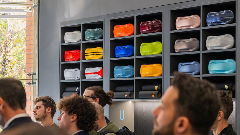 与此同时,摩德纳化身为致敬三叉戟品牌的特别舞台。阿尔比内利市场(Albinelli Market)、圣卡洛学院柱廊(Portico del Collegio San Carlo)及市中心街道等标志性地点,均布置了专为玛莎拉蒂打造的艺术装置、大型广告牌与投影。整座都市以“摩德纳,玛莎拉蒂之城”为全新主题,展示多台采用摩德纳市象征性的黄蓝双色涂装的特别版车型,侧面则饰以将五线谱中的高音谱号巧妙替换为三叉戟标志的音乐主题图案。