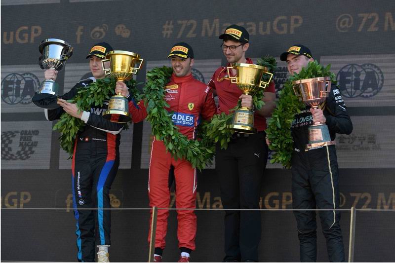 法拉利全球耐力赛与客户赛车部门主管Antonello Coletta在赛后表示:“能够拿下这场比赛的胜利,我们当然非常高兴。去年我们因非自身原因而与冠军失之交臂。我们为Fuoco感到欣慰,也为整个法拉利团队感到自豪——这座世界杯冠军奖杯,不仅有力证明了法拉利 296 GT3赛车项目自始至终的扎实与领先,也充分肯定了法拉利AF Corse车队整个周末的出色发挥。更重要的是,这份荣耀属于Fuoco。他连续两年在澳门以卓越表现树立起实力标杆,是实至名归的冠军。唯一的遗憾是叶一飞没能一同登上领奖台。他整个周末的表现稳步提升,展现了真正的团队精神;他本应获得更好的名次,但起步阶段的碰撞影响了最终结果。此外,我们也要衷心感谢和谐车队。在澳门这条难度极高的赛道上,让两台赛车同时跻身前八并不容易,这一成绩充分体现了他们的努力和投入。”