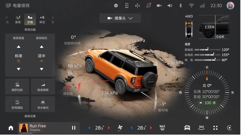 福特智趣烈马越野360显示超30项关键参数