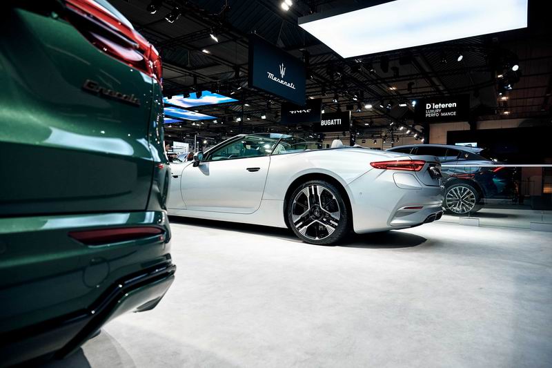 在布鲁塞尔车展期间,莅临11号馆的参观者可欣赏伫立于玛莎拉蒂展台的四款重磅车型,深度感知品牌的多元魅力。全新运动超跑MCPURA Cielo,以来自Fuoriserie私享定制项目的“AI幻彩蓝”(AI Aqua Rainbow)涂装惊艳亮相。车辆采用标志性敞篷设计,外观焕新的同时,奢华座舱也更上层楼。动力领域,其所搭载的“Nettuno海神”V6双涡轮增压发动机,可输出630匹马力,完美演绎了三叉戟品牌的性能基因与赛道激情。与之相邻的GranCabrio纯电敞篷跑车,则将玛莎拉蒂对电动奢华的理解诠释得淋漓尽致。车身皓空白(Bianco Astro)涂装彰显纯粹格调,具备纯电时代的强劲性能,最高时速可达290公里/小时,成为当前市场上极速最高的电动敞篷车之一。同时,车辆四座设计更完美兼顾了与亲友同行的露天驾驶乐趣。