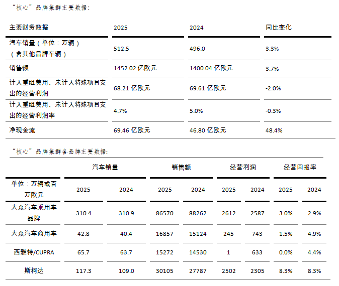 2025年大众汽车“核心”品牌集群按既定战略目标稳步推进,各项工作有序落地。尽管受不利特殊因素影响,“核心”品牌集群仍实现经营利润