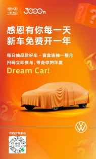 新车免费开一年 一汽-大众大众品牌推出3000万用户感恩礼