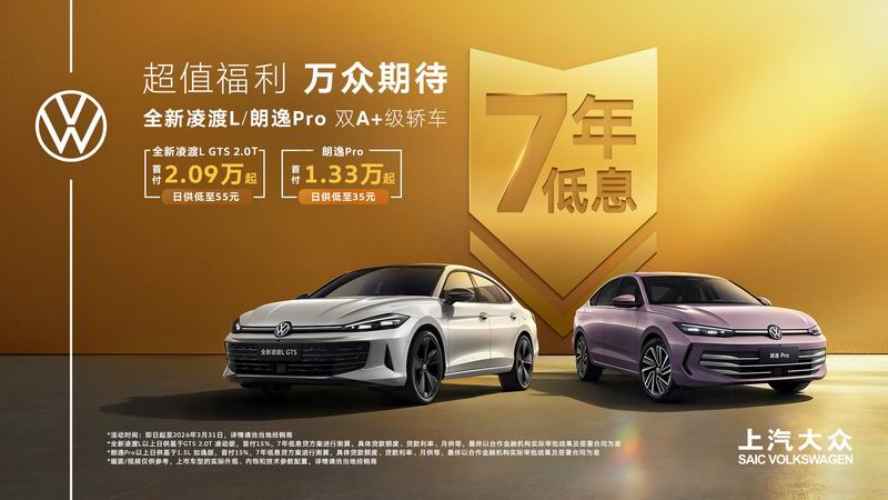 春风送暖,万物复苏。正值三月踏青好时节,上汽大众特别推出限时购车政策,旗下两大A+级明星车型——全新凌渡L与朗逸 Pro,可享“7年低息”超值购车福利。其中,全新凌渡L GTS 2.0T版本首付仅2.09万元起,日供低至55元;朗逸 Pro首付仅1.33万元起,日供低至35元,助力春日出行更舒适、更精彩。