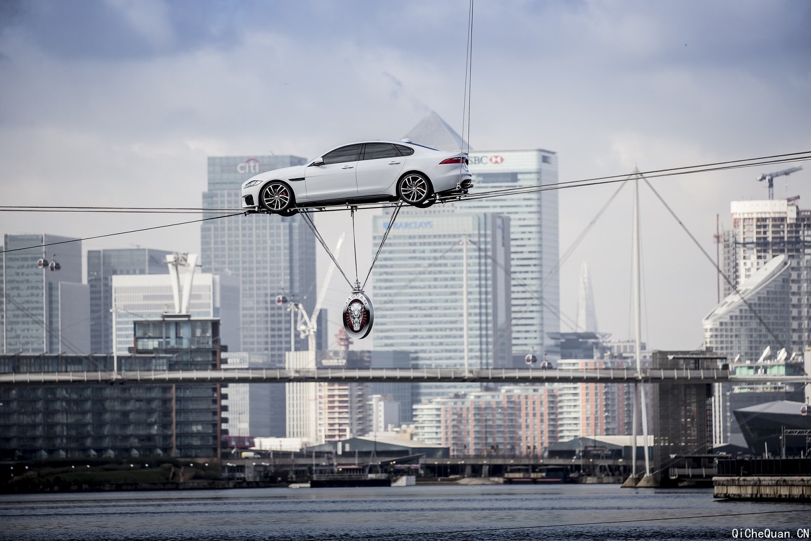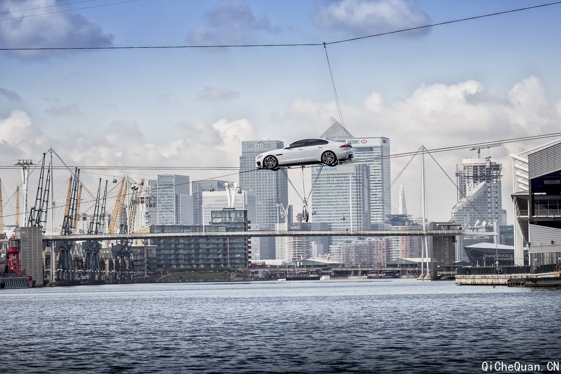 捷豹全新一代XF携手曾参演电影007系列电影、《谍影重重》和《夺宝奇兵》的英国专业影视动作特技演员Jim Dowdell,驶过两条高悬于英国金融区Canary Wharf码头河面上18m处,全长240米,直径仅为34mm的钢丝,完成世界上最长高空钢丝水上穿越。从业35年来,Jim Dowdell曾在众多好莱坞电影场景中驾驶捷豹汽车,对于本次特技表演,他依旧十分重视,“这次特技表演中最大的考验是自然力量的未知性,高空钢丝在风中产生的潜在振荡增加了挑战的难度,而直径只有34mm的钢丝意味着这趟旅程需要绝对的精度、平衡感和控制力。”