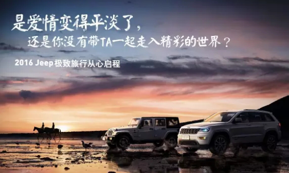 从过去单维的追求财富积累,到如今更享受个人内心的丰富,我们应该共同去找回最初的事业、亲情、爱情、友情!用5天的旅行,去改变10年的追求。生命中最值得骄傲的,不是公司登陆纳斯达克新三板,也不是城市黄金地段安家立业,而是在你拥有这一切的时候,你的身边有最爱的人陪你看细水长流,有闪耀的阳光照进茁长成长的孩子心里,有肝胆相照的兄弟陪你全力以赴,有生命中未曾见到的风景不断让你经历和体验。在这样一个需要去探索全新世界、全新时代价值的时代,Jeep也将用骨子里纯粹的探索基因,去陪伴、去理解、去激励每一个处于时代拐点的你!