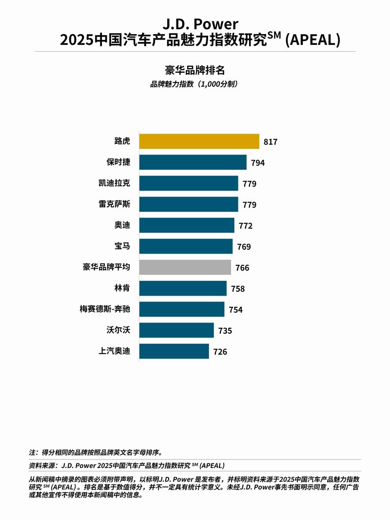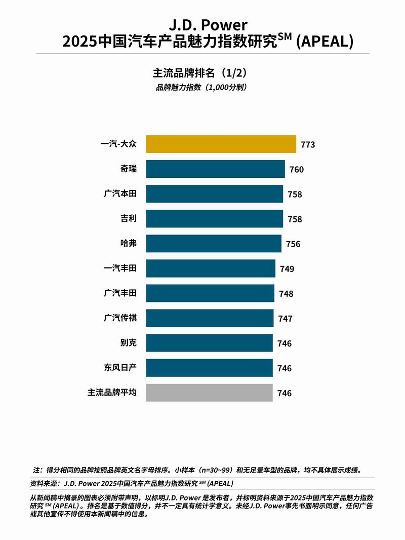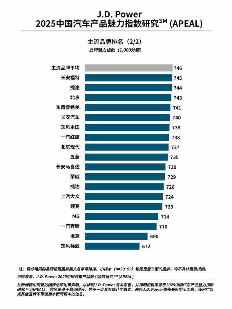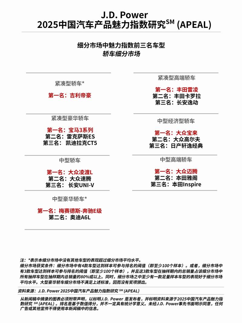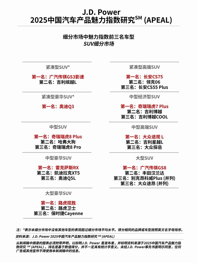 2025中国汽车产品魅力指数研究SM(APEAL),这是J.D. Power连续第23年发布这一研究。该研究衡量了燃油车新车车主在购车2至6个月内拥有和驾驶车辆的各方面体验,从而最终整合出让新车购买者感到兴奋和欣喜的车辆要素设计组合,是汽车厂商设计和开发车辆的重要依据。