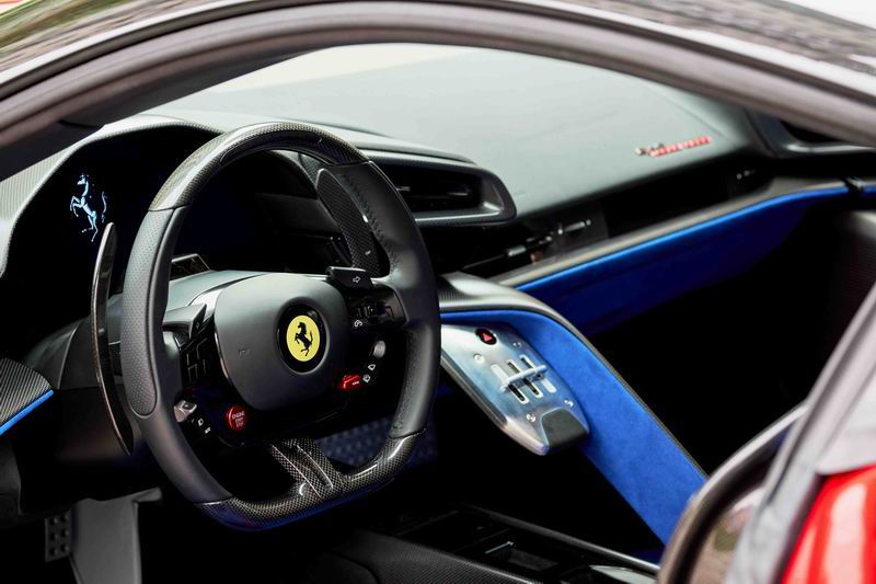 此外,新车还提供Assetto Fiorano配置车型,旨在最大限度地提升新车的动态性能和空气动力学表现。得益于碳纤维和钛合金等复合材料的广泛应用,Assetto Fiorano配置车型减重约30公斤。空气动力学系统亦全面升级:车头配备了尺寸更大的导流翼片,而车底前部增设了一对涡流发生器。车尾则以两组双翼设计取代标准版车型的双尾翼结构,在几乎不增加风阻的前提下,将垂直下压力水平提升至原双尾翼设计的三倍。值得一提的是,Assetto Fiorano配置车型首次提供前桥升降系统选装配置,并可选装米其林Pilot Sport Cup2轮胎在内的多款轮胎。Assetto Fiorano配置车型将提供Bianco Cervino与Rosso Corsa两种专属配色方案。