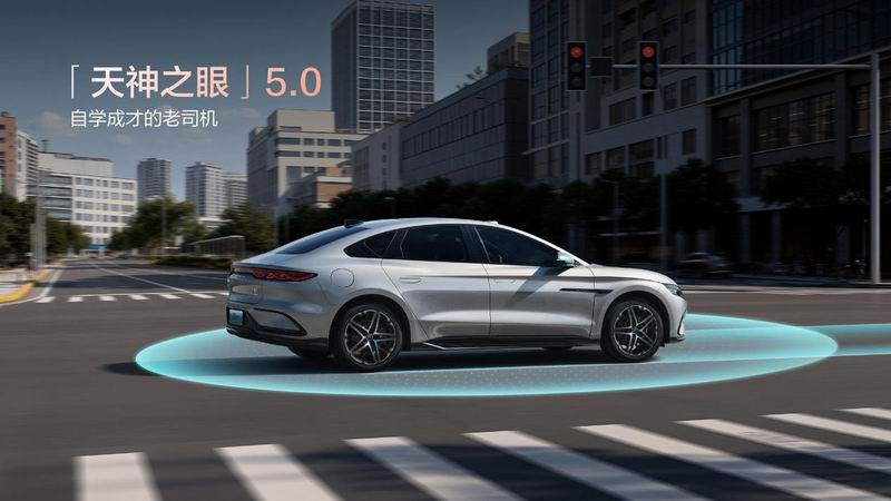 电池安全拉满,500 次闪充循环后针刺测试稳固,底部可承受国标 10 倍撞击,电芯终身保修,容量低于 77.5% 免费更换。“天神之眼” 5.0 智驾系统天神之眼基于强化学习端到端大模型,支持高速自主变道、支持高速自主变道、自动超车、ETC 无感通行;智能泊车,可选激光雷达解锁城市辅助驾驶,智能泊车场景安全全面兜底。