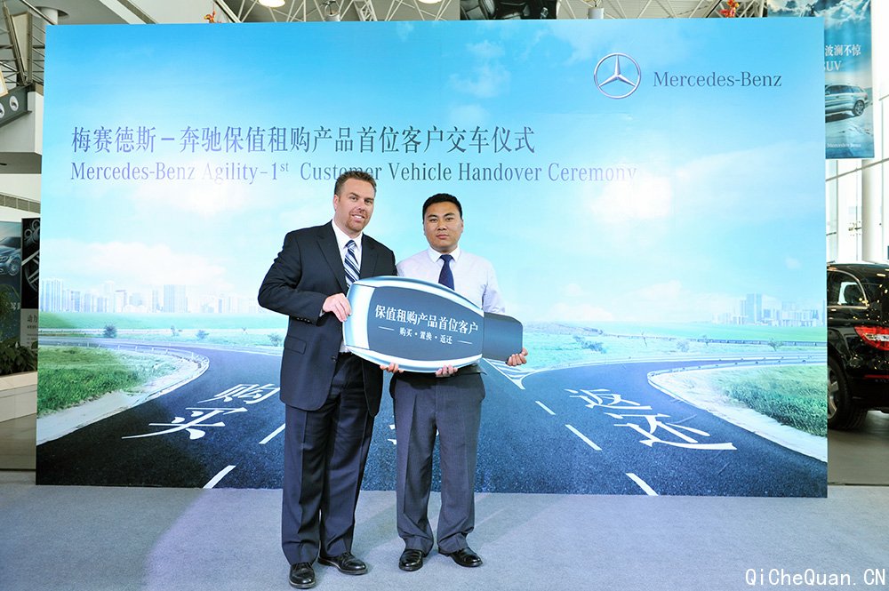 ![]() 梅赛德斯-奔驰租赁有限公司总裁兼首席执行官 夏铮铭 北京梅赛德斯-奔驰销售服务有限公司销售与市场营销执行副总裁段建军表示:“我们始终致力于提供最佳的客户体验,全新保值租购产品的推出则是其中的一个重要体现。通过保值租购产品,梅赛德斯-奔驰打破了传统购买方式的桎梏,向中国消费者引入了一种提前享受产品并灵活处理资金的创新金融方式,并最大程度上保障了客户利益,助力中国消费者早日实现拥有星徽座驾的梦想。” ![]() 梅赛德斯-奔驰租赁有限公司总裁兼首席执行官 夏铮铭将车钥匙交与中国地区保值租购首位客户 保值租购可让消费者无需一次性投入大笔资金购买车辆,而是先享星徽座驾,后做三重智选。这与之前传统的现金购车或金融贷款购车都不一样,其最大的区别在于,保值租购可以通过24个月或者36个月的租期,最大程度地扩大客户对车辆这一有形资产的最终选择权。根据保值租购产品方案,客户只需预支相当于所选车型售价最低10%的预付款以及10%的保证金,自由选择24个月或36个月租期,就可以极具吸引力的月租价格优先享受奔驰座驾。在合同期末,客户可从“购买·返还·置换”三种方案中灵活选择,即可选择购买现有车辆,或将车辆返还至梅赛德斯-奔驰授权经销商店,亦或置换最新车型,畅享最新潮流与科技。以奔驰B180运动旅行车为例,如果客户选择36个月租期,约定每年行驶20,000公里,那么客户先期只需支付27,800元预付款和27,800元保证金。在随后的36个月中,每月只需支付4, 998元月租,便可畅享这款心仪座驾,并在合同期末拥有灵活的三重选择。 ![]() 保值租购首位客户与到场嘉宾合影留念:梅赛德斯-奔驰租赁有限公司总裁兼首席执行官 夏铮铭(左四)梅赛德斯-奔驰汽车金融有限公司销售及市场营销总监 闵哲思(右一) 全新的保值租购产品凭借灵活多选,零风险、轻松偿付以及付款方式自主化等特点,势必在不久的将来成为梅赛德斯-奔驰在华长期可持续发展的又一里程碑。梅赛德斯-奔驰将根据中国市场需求的不断变化,继续为个人和企业客户提供更多创新、多元化金融解决方案。 部分车型保值租购月租价格概览: