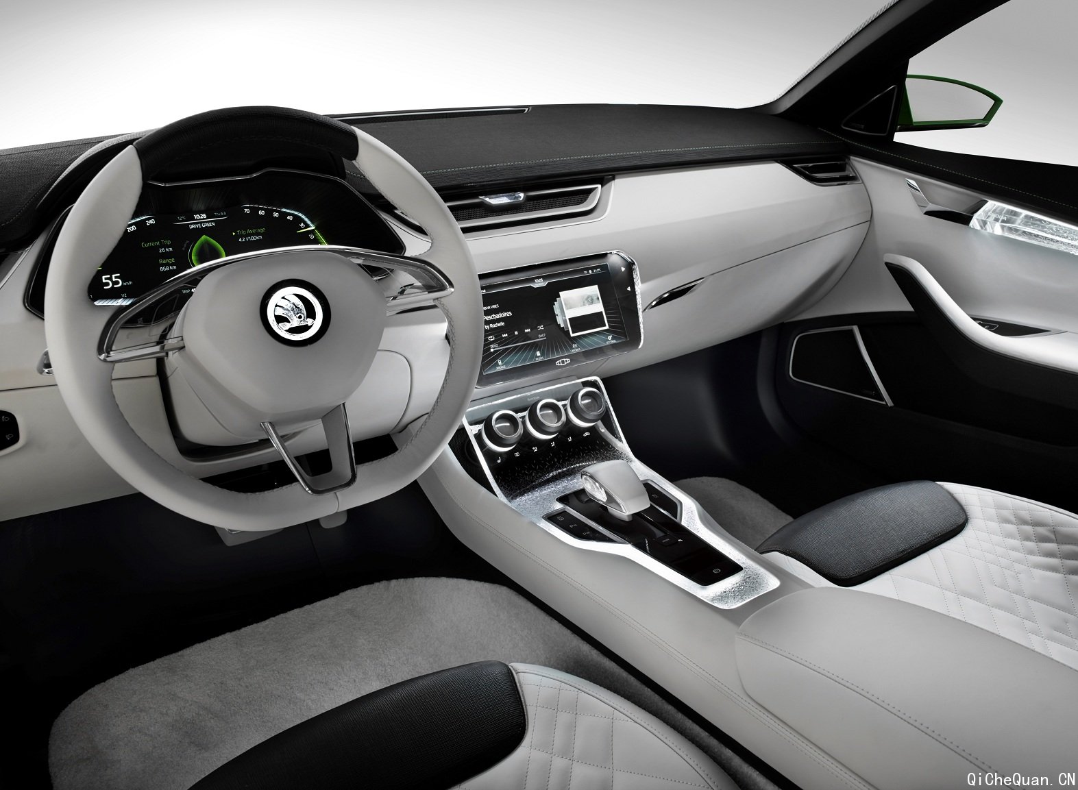 “斯柯达‘VisionC’不仅展示了斯柯达汽车卓越的设计和工艺水平,同时还凸显斯柯达作为历史最悠久的汽车品牌之一的活力和骄傲,”斯柯达汽车负责市场销售的董事会成员安世豪(Werner Eichhorn)先生表示,“在未来几年中,我们希望进一步在中国推进车型攻势,为中国消费者提供富有情感设计、创新技术、安全环保和诸多人性化解决方案的产品,保持斯柯达汽车持续稳定的发展。” 斯柯达“VisionC”是一款极富表现力的五门轿跑,设计时尚、动力十足而又不失优雅,代表了斯柯达汽车设计语言开启新的发展篇章。优雅的线条彰显了完美的车身比例。斯柯达汽车首席设计师JozefKabaň及其团队将柔和明快的轮廓、凹凸有致的表面与硬朗精准的线条进行了独特的组合。凹凸的表面和合理的比例建构出汽车清晰的结构,光与影的交错鲜明地塑造了车型外观,而汽车的边缘也得到了清晰的界定。对于JozefKabaň而言,“避免一切装饰至为重要。” ![]() 始于发动机盖侧翼的凌厉腰线自然地紧贴在斯柯达“VisionC” 车身两侧 自信十足的前脸 这款轿跑的前脸充满自信、动感十足。宽大的散热器格栅以及独特的锥状三角形前大灯是强有力的前脸的主要构成部分。刀锋形状的前大灯呈现出水晶切面的效果。与其组合在一起的雾灯同样采用三角形设计,如此三维四眼设计让这款车型呈现出极强的表现力。 ![]() 斯柯达“VisionC”的刀锋形状前大灯呈现出水晶切面的效果,每个散热片均饰以手工制作的水晶部件,而且具有精妙的间接照明效果 散热器格栅仍然沿用微微弯曲的形状,但是比现有的斯柯达车型稍平、稍宽一些。垂直的散热片是该车的一大亮点。在概念车中,每个散热片均饰以手工制作的水晶部件,而且具有精妙的间接照明效果。 前脸上较低的区域为宽度几乎已达到整车宽度的进气口,充分显示了该款车型的活力与优雅。 前脸左右两侧的垂直切面以轻微的弧度从A柱延展而出,过渡到前大灯和散热器格栅,勾勒和强调了发动机盖的形状。JozefKabaň将这种设计描述为“集情感、外形和动感于一身”。对发动机盖的这种重新诠释让斯柯达品牌标识成为前脸最为引人瞩目的部分。 动感优雅的轿跑轮廓与犀利飓风线的结合 清晰的线条令斯柯达“VisionC”的侧身格外飒爽明快。“我们设计了大量的边角,而这样的外形是非常夺人眼球的。”JozefKabaň表示。高高的飓风线、低位的前挡风玻璃以及较短的前、后悬距无不凸显着该车独特的动态之美。同样,始于发动机盖侧翼的凌厉腰线自然地紧贴在车身两侧。 充满力量感的时髦轮廓、从C柱上方缓慢向下潜行的车顶轮廓线、没有任何视觉分割的流畅线条、无框侧窗以及从两侧到车尾的有力过渡——该车所有组成部分都呈现出纯粹的美学特征。 较低的侧窗线逐渐向后延伸至后门的侧窗是典型的斯柯达设计。这种被设计师们称为“鳍”的设计特征首次应用于全新斯柯达Octavia明锐,后为斯柯达“VisionC”所继承,并成为它最与众不同的一大特征。 ![]() 位于车门的背光式水晶装饰元素是斯柯达“VisionC”的另一个视觉亮点 ![]() 斯柯达“VisionC”位于车门的背光式水晶装饰元素细节图 斯柯达“VisionC”的门把手极具特色。它们被设计师“隐藏”了起来。门把手位于飓风线下方,隐身在车门的外部饰边之中。如要打开车门,只需按压把手,车门便会自动打开,之后便可以对其进行其它操作。 宽大醒目的车轮拱罩让斯柯达“VisionC”的后侧翼尤为醒目。延展至车辆两个边沿的后灯和长轴距凸显了斯柯达“VisionC”的无限动感。此外,它还配备有19英寸超大铝合金轮毂。 尾部:出乎意料、激动人心 车尾的形状动感十足,激动人心且出乎意料。大量的3D设计创造出一种雕刻般的造型。新尾灯的设计流光溢彩、风格独具——具有典型斯柯达特征的C型尾灯被分为两个部分,即从C的中心水平分离为上下两个部分。上面的部分位于尾门,集成了所有的照明功能。下面的部分嵌入了后保险杠,集成了一些反光元素(猫眼)。 内饰:极致优雅与舒适 从斯柯达“VisionC”可以看到斯柯达汽车未来的内饰设计风格。内饰和外饰的设计和谐无间,整部车子都散发出时尚、动感和优雅的气息。引人注目的内饰特征包括利用大量凹面和凸面之间的组合营造优雅氛围、运用精准的线条、甄选品质上乘、质量一流的材料等。 ![]() 斯柯达“VisionC”极致优雅与舒适的内饰 ![]() 斯柯达“VisionC”的仪表板上最夺人眼球的中心饰品当属触摸式多媒体显示屏,抛光玻璃结构的应用让汽车内部熠熠生辉,是波西米亚水晶艺术另一得意之作 这辆概念轿跑配置了四个单人座椅,空间宽敞,四个驾乘人员可以舒适乘坐。尽管这是一款轿跑车型,但内部非常宽敞,加重的水平线突出了空间的宽敞感。所有的仪表和控制装置都按照最新的人体工学要求布置,安排合理。斯柯达“VisionC”的信息娱乐系统更是为数据处理和内容呈现设立了明确的标杆,乘客和驾驶员都可以通过大显示屏享受无限乐趣。 在驾驶员前方,设置了一个带有3D大屏幕的完全可编程组合单元。仪表板上最夺人眼球的中心饰品当属触摸式多媒体显示屏——它优雅地突出于仪表板,犹如悬挂在车内一般。而背景灯光则进一步增强了这种视觉效果。抛光玻璃结构的应用让汽车内部熠熠生辉,是波西米亚水晶艺术另一得意之作。 空