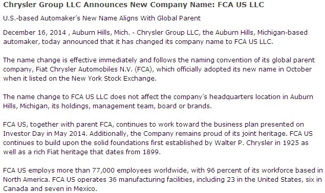 莱斯勒集团有限责任公司(Chrysler Group LLC)就在这样一天,发布了公开声明:该公司从即日起更名为“FCA美国有限责任公司(FCA US LLC)”。轻描淡写的几句话,宣告传统意义上的美国汽车“三大”,即通用汽车、福特、克莱斯勒仅剩下两家企业;宣告克莱斯勒这个美国土生土长的汽车企业成为历史;宣告意大利菲亚特颠覆式吞并克莱斯勒颠的意图,实现了;宣告马尔乔内——这个在汽车界出了名地能折腾的职业经理人,又干了件能让后人记住他的大事。 公开声明 克莱斯勒(不对,此时应该叫“原克莱斯勒”了)的公开声明并不显眼,只在FCA的网站上占据了不到1页的位置。对了,忘了交待一句,FCA美国有限责任公司的前身,即克莱斯勒公司与菲亚特结盟后,已于今年10月在纽交所上市时,更名为菲亚特克莱斯勒汽车集团(Fiat Chrysler Automobiles N.V.,简称“FCA”)。FCA的意大利业务,也就是菲亚特集团汽车公司,也已更名为FCA意大利公司。这意味着人们常说的菲亚特汽车公司与克莱斯勒公司一样,即刻成为历史。 新生的FCA美国有限责任公司,这样界定自己:“FCAUS LLC是一家刚刚拥有了新名字的北美汽车企业,拥有悠久的历史。我公司总部位于美国密歇根州奥本山。FCAUS LLC是FCA也就是菲亚特克莱斯勒汽车集团的成员,负责设计、生产克莱斯勒、Jeep、道奇、公羊及菲亚特品牌车型,同时承担阿尔法·罗密欧4C Mopar车型的生产工作。FCA US站在美国汽车巨人克莱斯勒的肩上,于今天开启全新里程。” 很明显,这份“自我介绍”告诉人们,FCA美国有限责任公司的全球总部仍在奥本山,也就是原克莱斯勒的全球总部所在地;克莱斯勒公司虽然不负存在,但克莱斯勒品牌还在;FCA美国有限公司将不仅负责原克莱斯旗下几个品牌的运营,还要为原菲亚特公司即FCA意大利公司的部分品牌提供帮助。 克莱斯勒的“粉丝”们可以放心了,因为克莱斯勒品牌还在,那个锐利的美国银翼(克莱斯勒品牌LOGO)仍在“飞翔”。 就原克莱斯勒公司而言,这家命运多舛的美国车企,也许就此终结了飘忽不定的命运。1925年6月6日,沃尔特·克莱斯勒利用马克斯韦尔汽车公司残留资产,创建克莱斯勒汽车公司。1998年,德国戴姆勒与克莱斯勒结盟,组建戴姆勒-克莱斯勒集团,世界第五大汽车企业就此诞生。但这个写进教科书的跨大洲汽车企业联盟,最终由于种种原因分崩离析。 2007年5月14日,戴姆勒-克莱斯勒宣布将其持有的克莱斯勒80.1%股份,出售给博龙资产管理有限公司,从此,戴姆勒和克莱斯勒各走各的路。2008年国际金融危机期间,克莱斯勒和通用汽车都被逼到破产边缘,但白宫只对通用汽车进行了“保留性援助”。对克莱斯勒,大有谁能替它还债它就归谁的意思。 于是,马尔乔内率领的菲亚特“站”了出来:2009年1月21日,克莱斯勒与菲亚特初步达成协议,由菲亚特向克莱斯勒提供汽车资产及技术,换取对方35%的股权。2009年4月30日,克莱斯勒申请破产保护,由于有菲亚特的支持,克莱斯勒很快脱离破产保护程序,重获新生,不过代价是菲亚特正式入主克莱斯勒。 如今,克莱斯勒公司悄悄地“走了”,但奥本山的银翼之旗仍在飘扬。 (责任编辑:房静) |