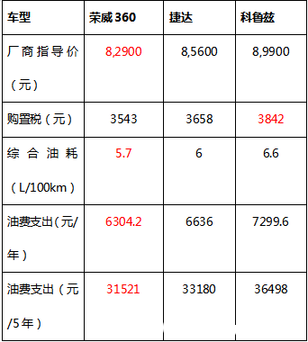 三款车的售价几乎处于同一纬度,但荣威360车价上还是相比捷达和科鲁兹分别便宜了2700元和7000元。虽然购置税优惠幅度方面,科鲁兹可以优惠的幅度最大,但与车价上的差价折算后、还是需比荣威360多支出6700元左右的购车成本,而捷达折算购置税优惠后则仍要比荣威360多支出2600元左右。