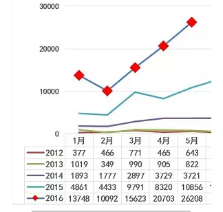 新能源销量受政策和消费需求双向驱动 今年上半年,国家和地方政府对新能源汽车补贴的幅度不仅滑坡明显,而且还提高了补贴门槛。受年初骗补以及多地新能源补贴政策迟迟不出台的影响,今年一季度,国内新能源汽车仅销售了39463辆,比4月份和5月份两个月的销量总和还少了7000多辆。随着4月各地补贴政策陆续推出,最近两个月新能源汽车市场“高烧”不退,销量增长迅猛。尤其是刚刚过去的5月,我国新能源汽车销量达到了26208辆,同比去年5月的10856辆,猛增15352辆,增幅达141%。 ![]()